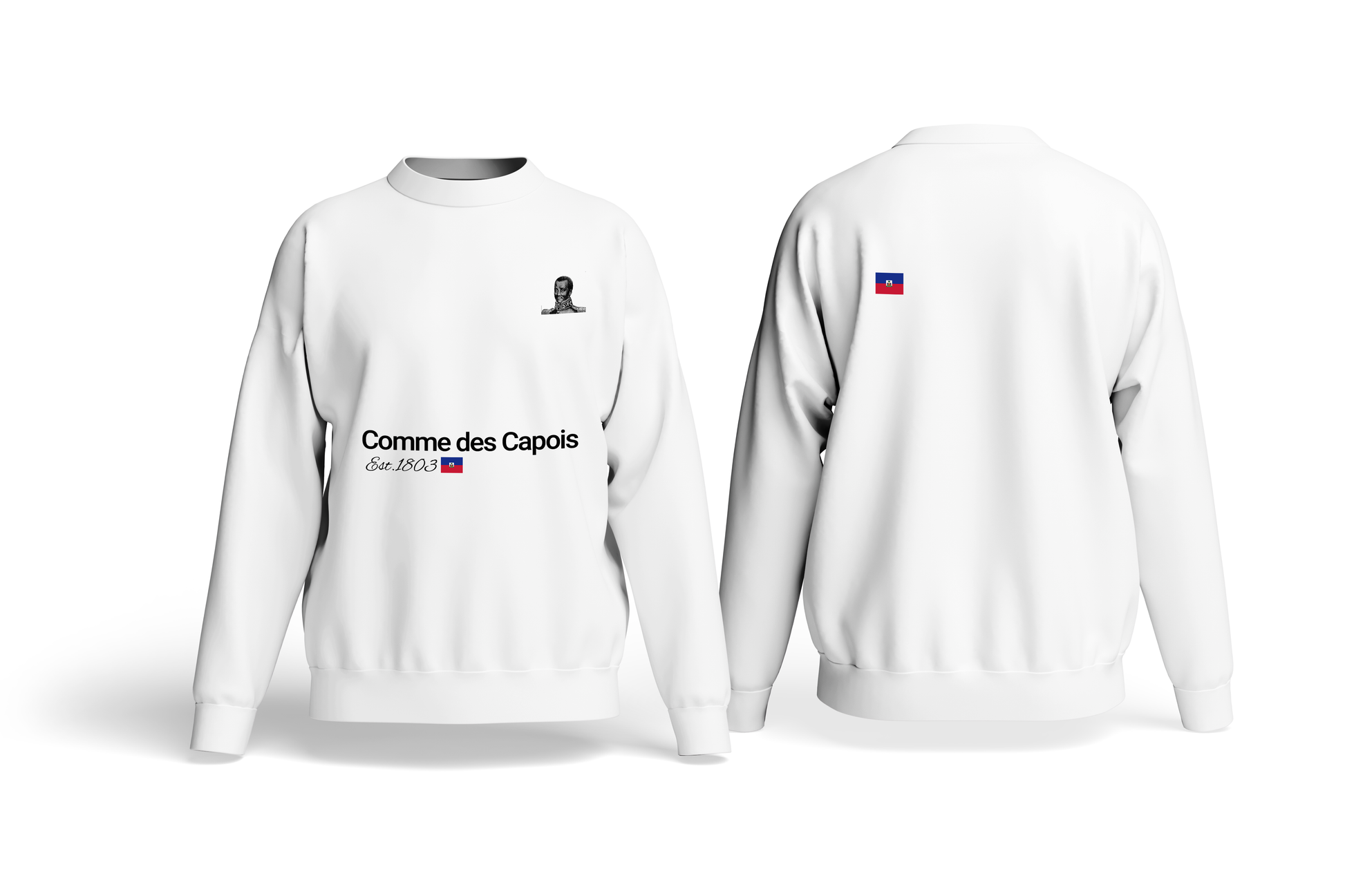 Rep your favorite Haitian city with pride. The Comme Des Capois sweatshirt provides a modern twist and hommage to Haitian revolution key players, this comfy sweatshirt is a great conversation starter and a perfect closet essential.